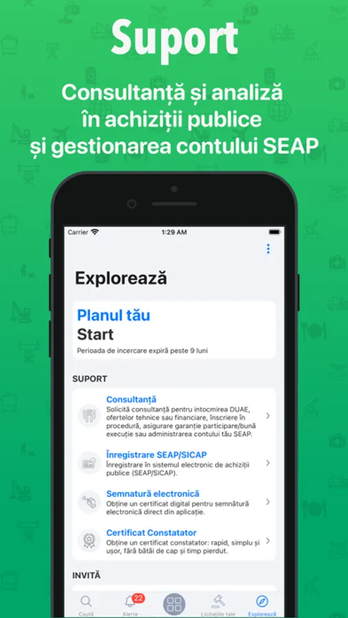 You receive real-time notifications on your phone with new auctions published, and at the end of the day you receive an e-mail with the latest tenders published in SEAP.
