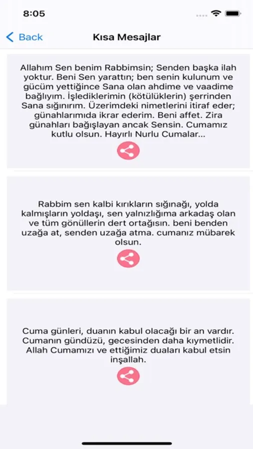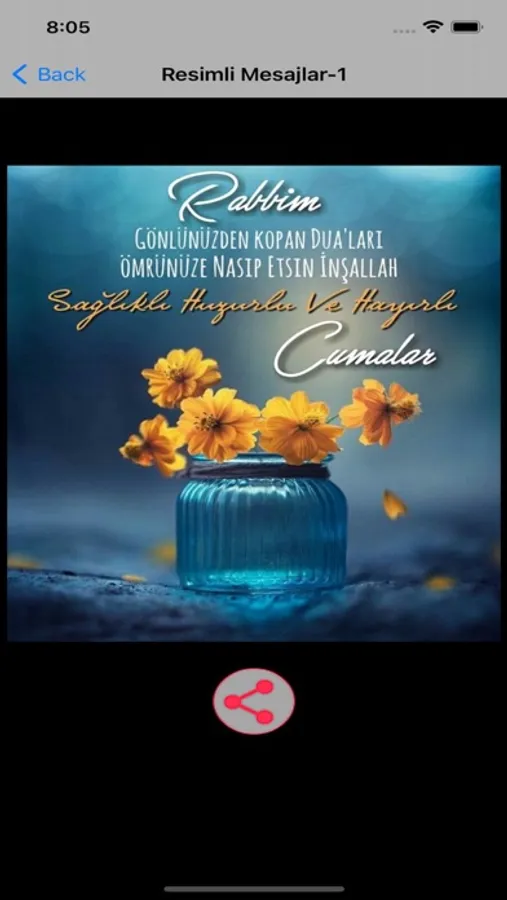 Mübarek cuma gününün mutluluğunu sevdiklerinizle paylaşmanız için hazırlanan uygulama ile beğendiğiniz resimli ve ye kısa mesajı sevdiklerinizle paylaşın.