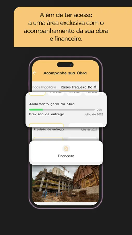 Acompanhe os detalhes da sua obra, serviços financeiros, documentação e solicite atendimentos técnicos para sua unidade.