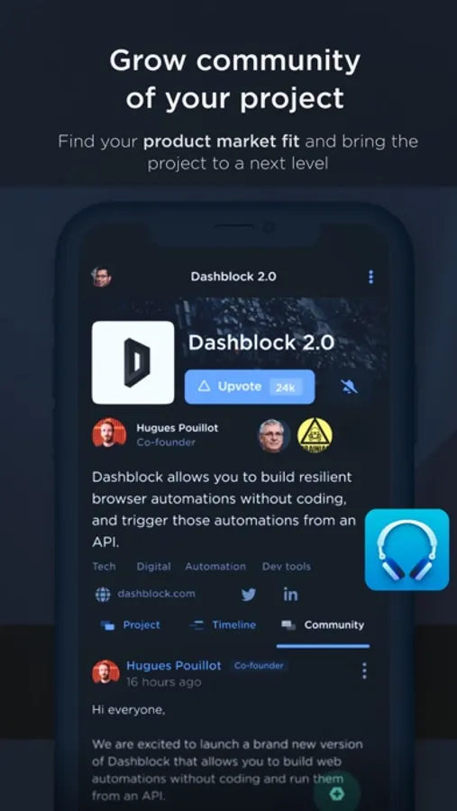 PROJECT FOUNDERS get a chance to collect feedback that will improve their product, build a loyal community of early adopters and first customers and even find their new teammates.