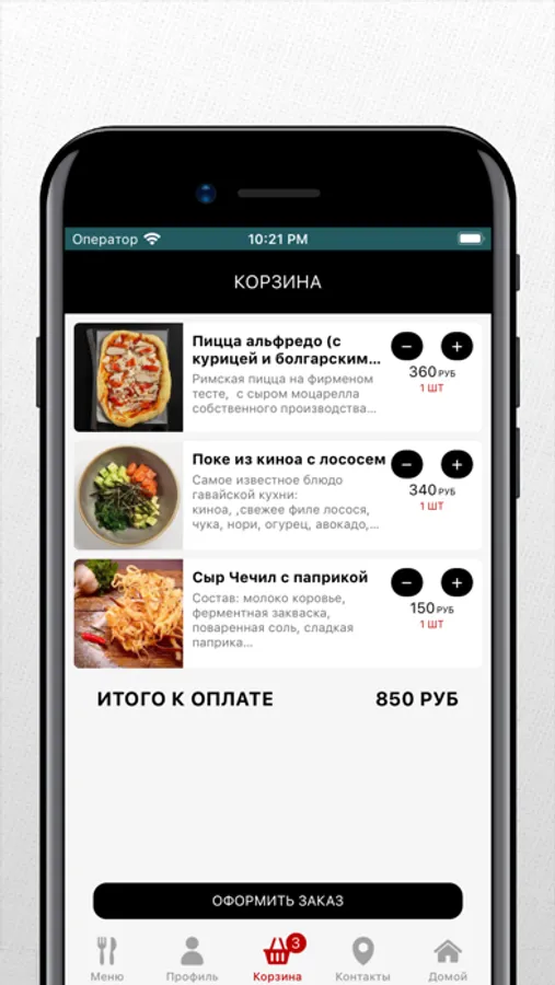 Оплата Apple Pay и банковскими картами прямо в приложении. Приложение сохраняет историю всех заказов.