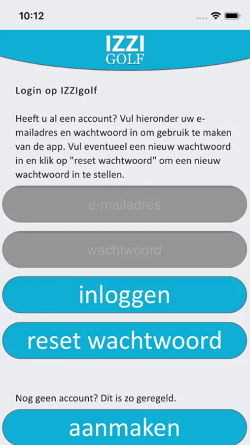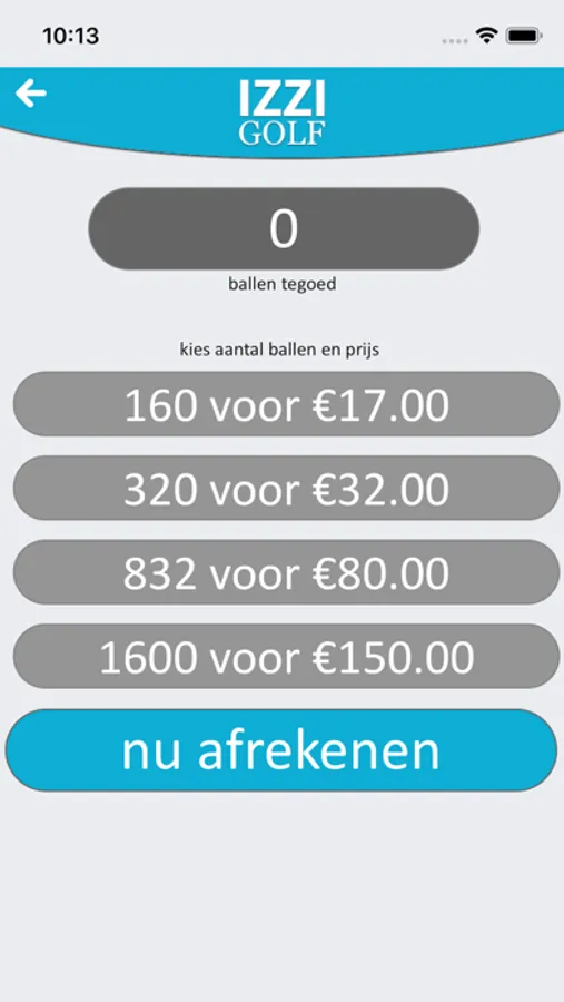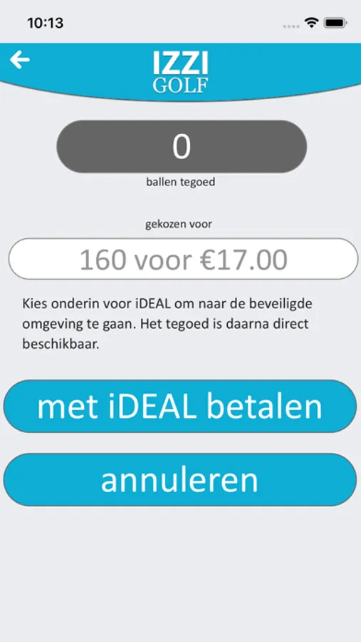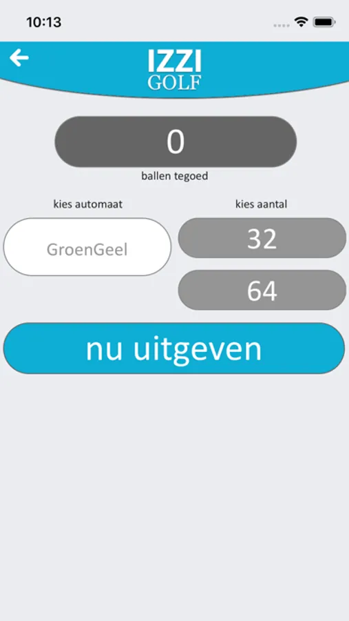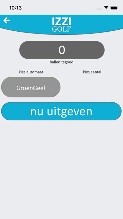 Met deze IZZIGOLF-App kun je ballen uit de golfballenmachine van Golfbaan Groen-Geel halen zonder gebruik van pasjes. Gewoon de app installeren, naam/e-mailadres/wachtwoord invullen en daarna even opwaarderen met iDEAL. Daarna kun je de app eenvoudig ballen laten uitgeven op de machine.