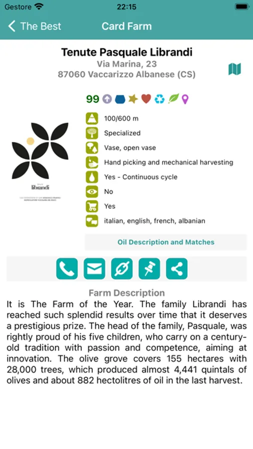 • Learn everything about the existing oil varieties through a list of over 150 cultivars including their description, organoleptic notes, origin and diffusion. THIS FUNCTION IS ONLY AVAILABLE IN THE VERSIONS ON PAYMENT.