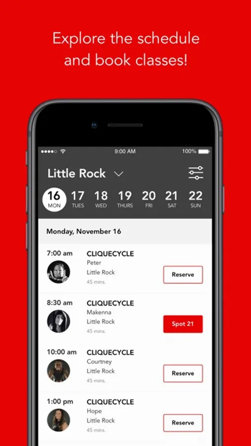 Purchase Ride Packages & Memberships, Schedule your Class, Book the Bike you want from an Interactive Map, Book bikes for friends, Check in for class, Purchase add on's for class, Shop for Clique Swag, All from the next generation CliqueCycle app