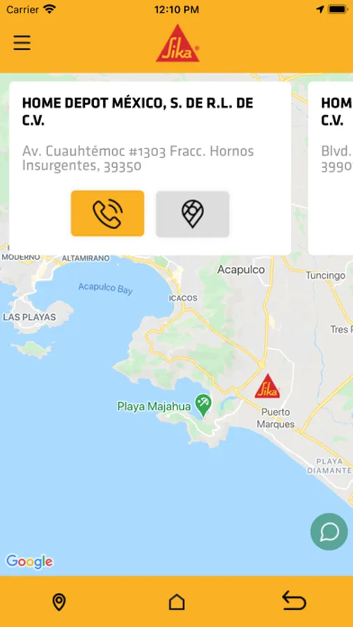 Además, la aplicación cuenta con un sistema de geolocalización para que puedas encontrar a tu distribuidor Sika Autorizado, puedes llamarle o ver la dirección exacta de donde se encuentra.