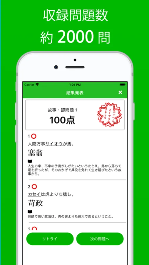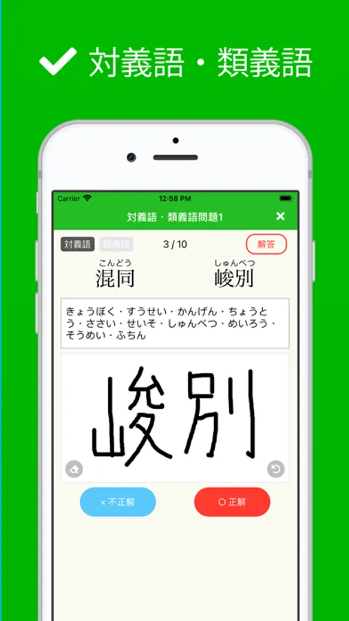 ※2009年から10年以上にわたり運営されているWEBサイト「漢字検定準1級 無料練習問題」のアプリ版となります。