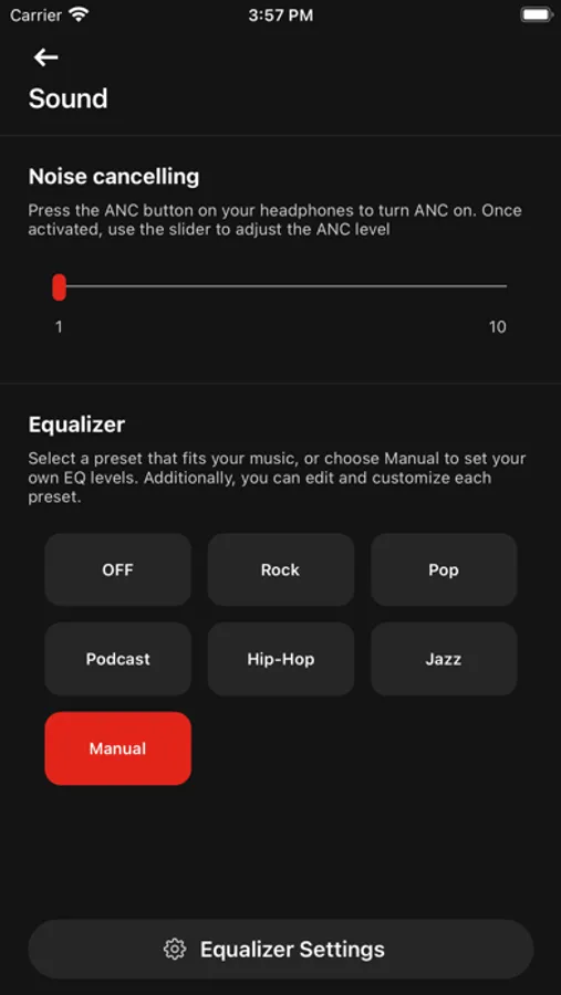 The EQ tool allows you to select the perfect Sound EQ preset for whatever you’re listening to. Take matters into your own hands by customizing each level to your liking, or create your own sound signature entirely from scratch.