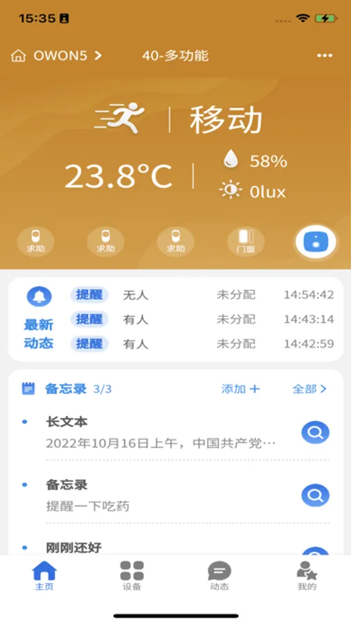 i居安 提供了一种简单易用的方式,可以随时随地使用手机监控您的家,了解亲人在家的情况。 您需要购买一个 OWON 智能网关,它是您养老系统的核心,可将您的手机与散布在您家中的所有智能养老设备连接起来。 凭借其强大的处理器和高效的软件设计,它可以让您的系统 7/24 稳定工作。OWON 提供一系列智能养老设备,如跌倒传感器、Cat1语音呼叫器,人体检测传感器,门磁,尿垫,睡眠监护带等。 这些智能养老设备让您或您的亲人生活在更智能、更安全的家中。