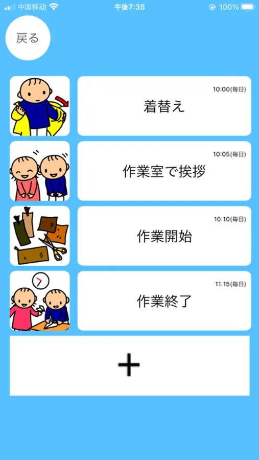 1.子どもの「活動場所」「活動している時間」などの情報をもとにその日のスケジュールを表示し、やり忘れを防ぎます。