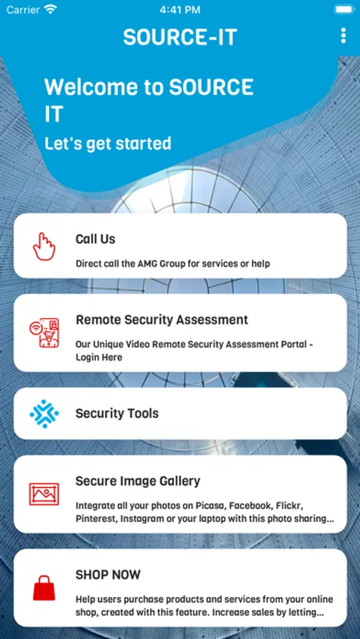 SOURCE IT by AMG is a complete is a comprehensive security services and service sourcing application. Whether it is a remote security assessment or you need a technician or guard service direct which is tracked until arrival, this app is the place to source it.