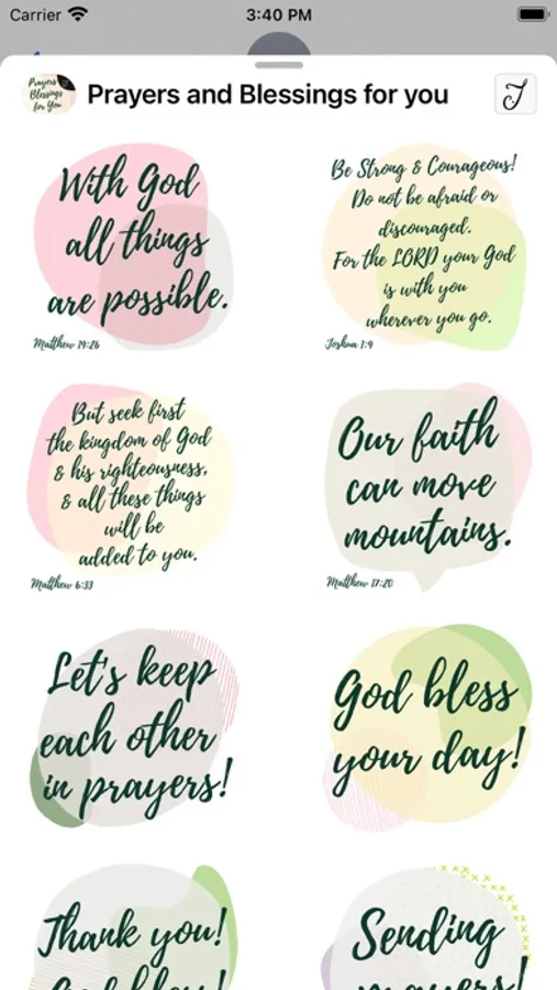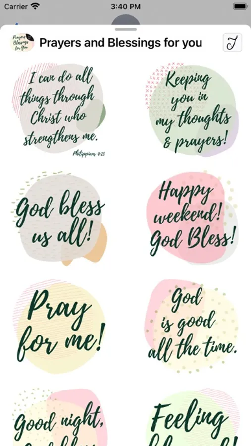 This iMessage Stickers pack comes with commonly used religious greetings & some verses from the Bible. Instead of typing in your greetings, you can now send your friends and family these well-designed religious greetings as stickers. Make your text message more personal today with earthy natural tone and graphic.