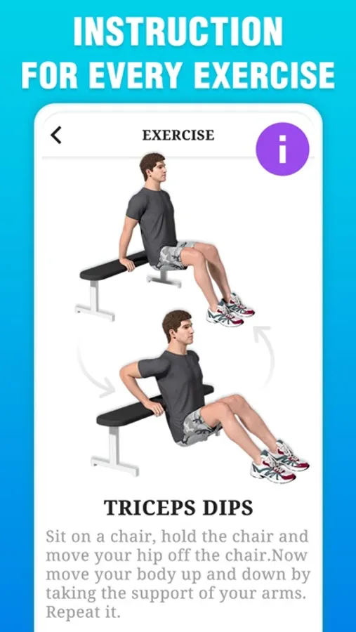 Workout a few minutes a day. Get back your biceps and triceps, No equipment needed, Strength Training App includes exercises for arms that focus on bicep exercises and upper body workout which can be performed with your body weight at home.