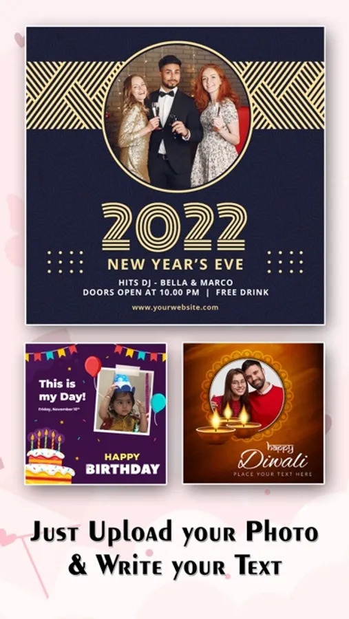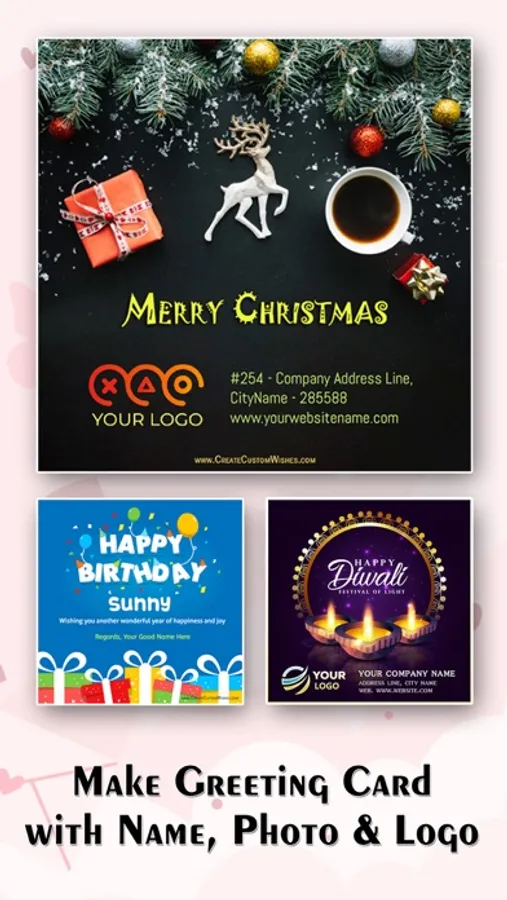 We are providing best solution to easily create your own customize and personalize greeting and wishes cards for all Religious Festivals, Special Days, Special Occasions and Events, like Happy Diwali, Merry Christmas, Eve, Happy New Year 2021, Eid Mubarak, Friendship Day, Mother’s Day, Invitation Card and many more using this app.