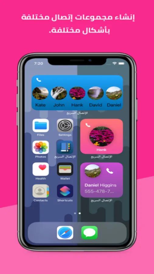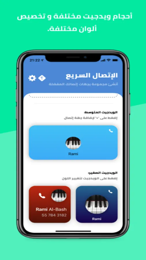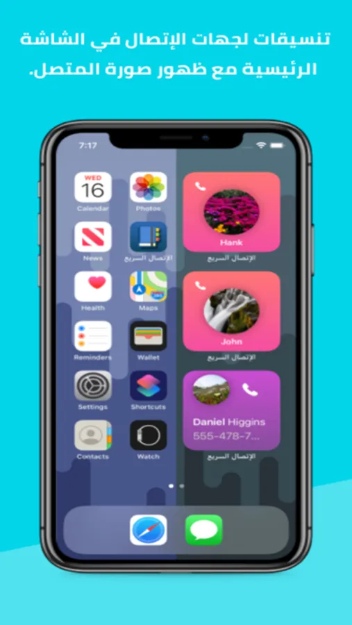 - أشكال ويدجيت مختلفة وعرض تفاصيل جهات الإتصال وصور المتصلين.