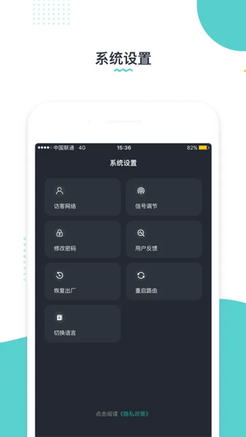 路由器网络接口配置,wifi配置,信号强度配置,账号密码配置,访客网络等功能完善。