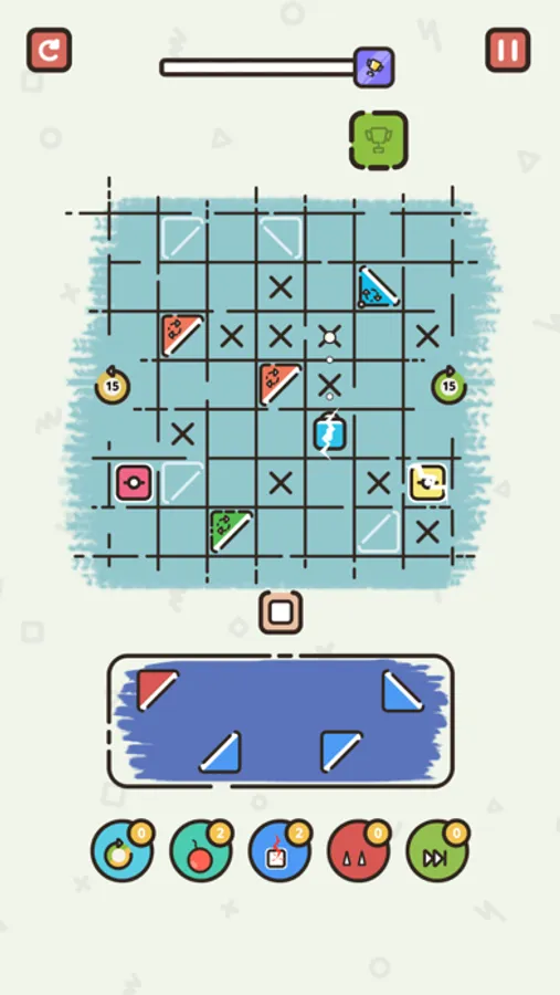 - Drag the triangle block and place it on the grid to form a path for the ricocheting ball.