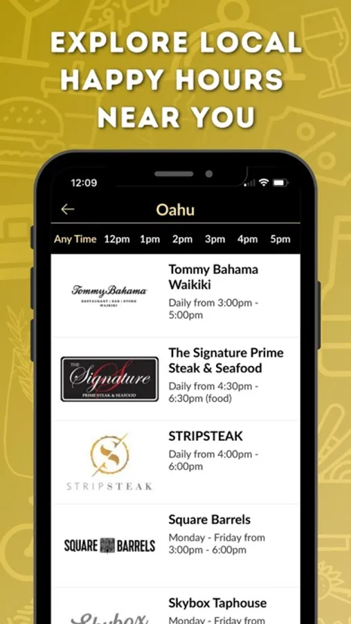 Hawaii Happy Hours is a mobile app that provides access to happy hours and exclusive discounts from local Hawaii restaurants, cafes, activities and more. We spend a lot of time hunting down some of the best happy hours in Hawaii so you can easily find the best deals from local restaurants and bars.