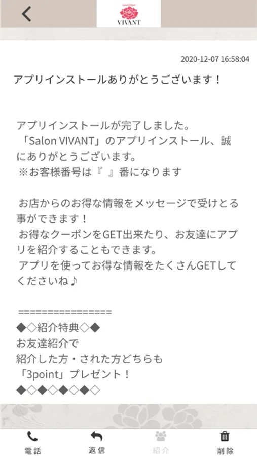 Salon VIVANTのアプリをSNSを通じてお友達に紹介する事ができます。
