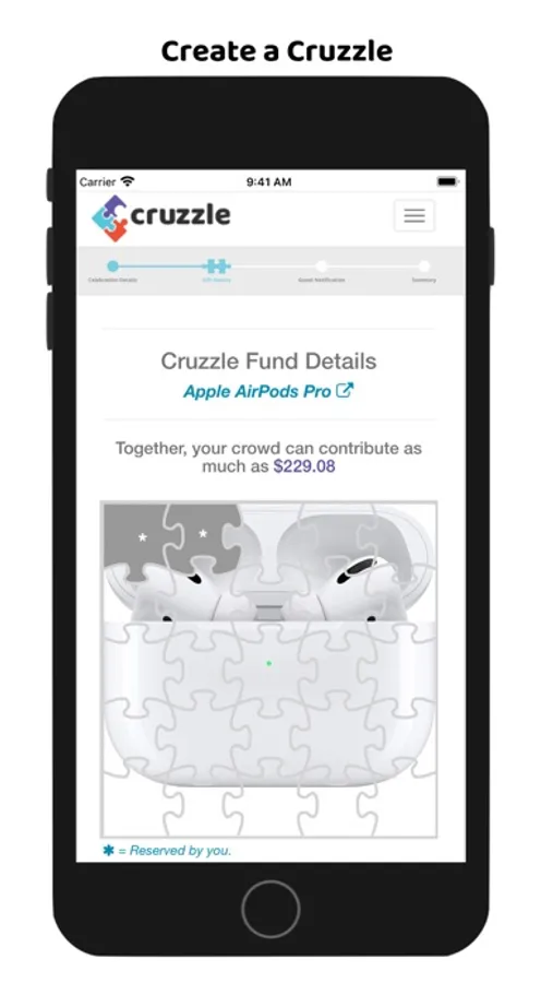 Cruzzle is the new crowd gifting app that makes group gifting fun and easy. An interactive puzzle splits the cost of any gift into equal dollar pieces. Invite family and friends to complete the puzzle to give the recipient that special gift they’ve been wanting.