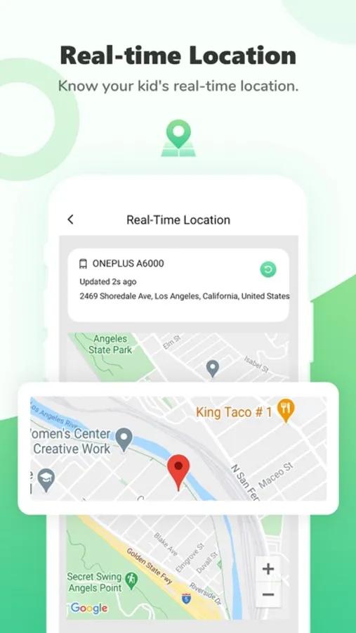 - Create safe zones for kids and get alerts when they arrive or leave the defined areas