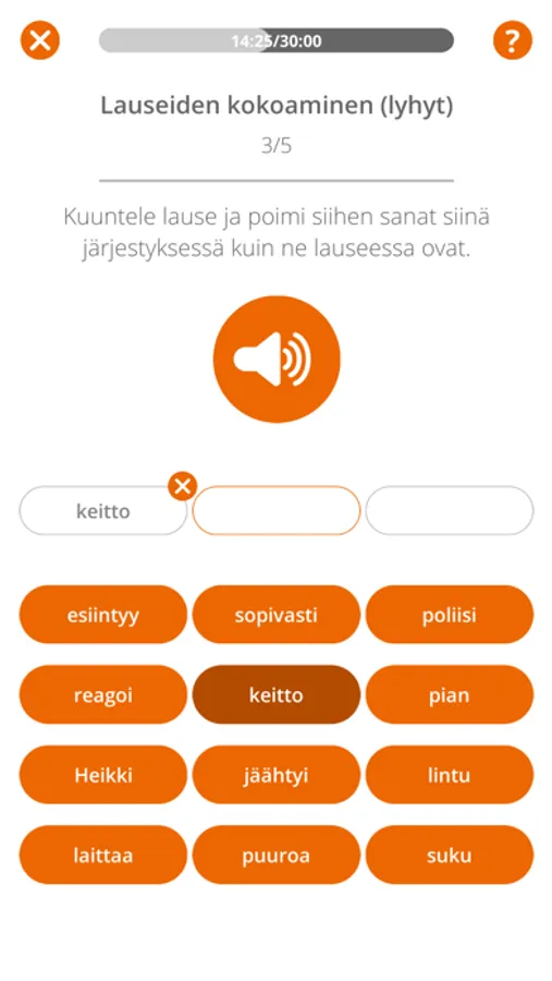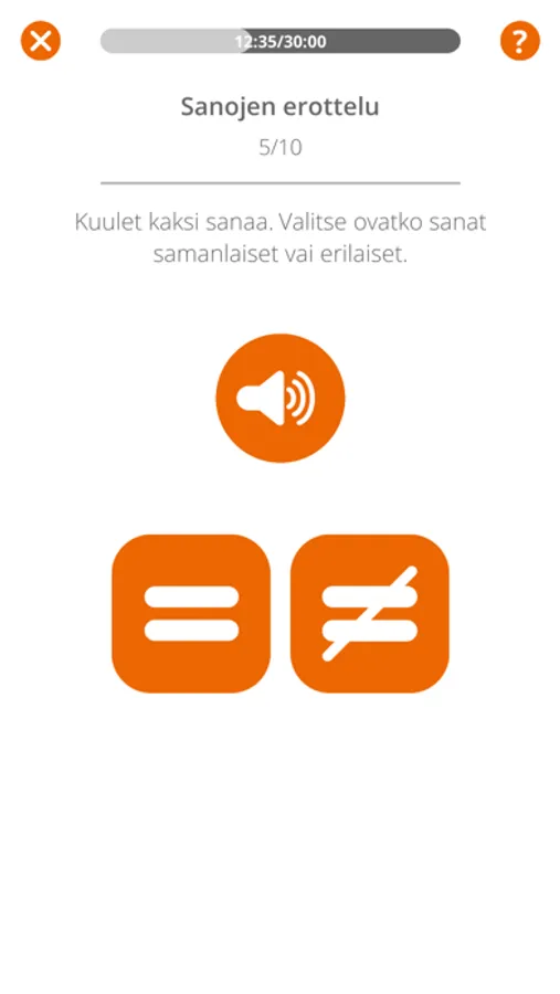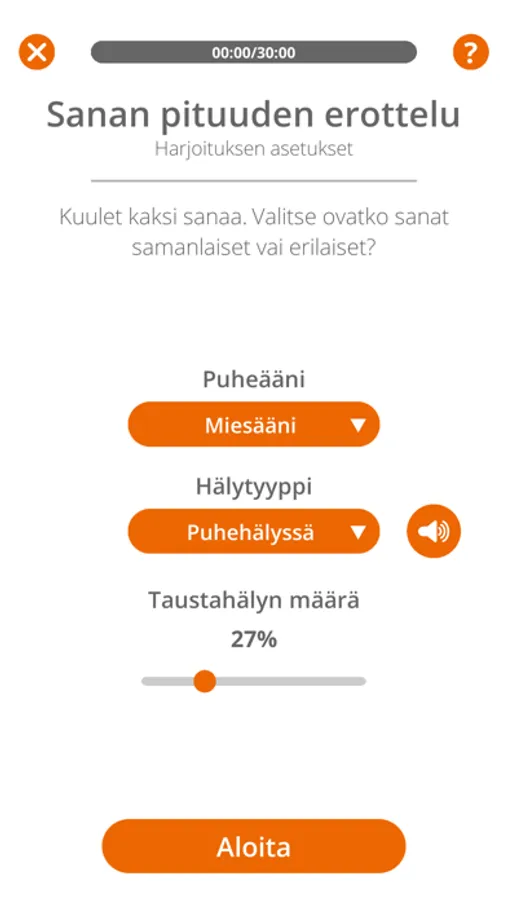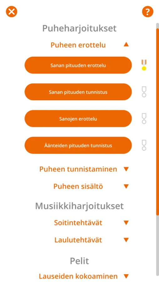 Voit tehdä puhetehtäviä, musiikkitehtäviä tai pelejä eri vaikeustasoilla.