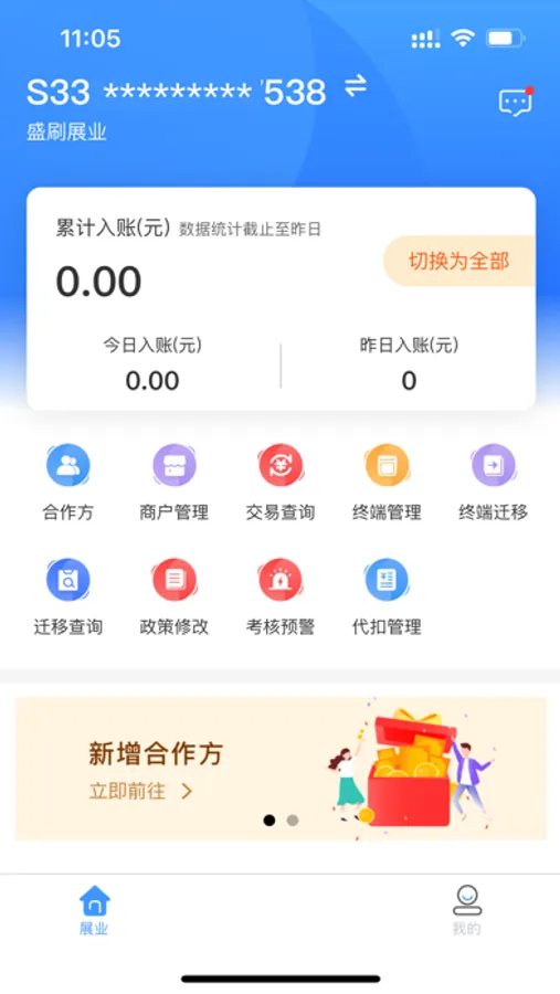 盛刷展业是一款为广大服务商提供的移动展业工具,服务商可以通过盛刷展业APP完成商户报备,合作方管理,终端管理,交易订单查询等多项服务功能。