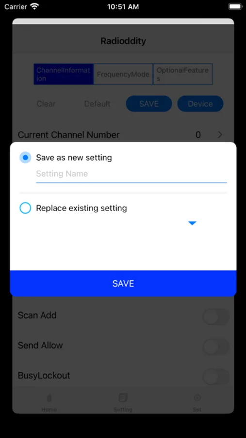Walkie-talkie read-write frequency. The user uses THE APP to read and write frequency to the machine through Bluetooth and modify the Settings of the walkie-talkie