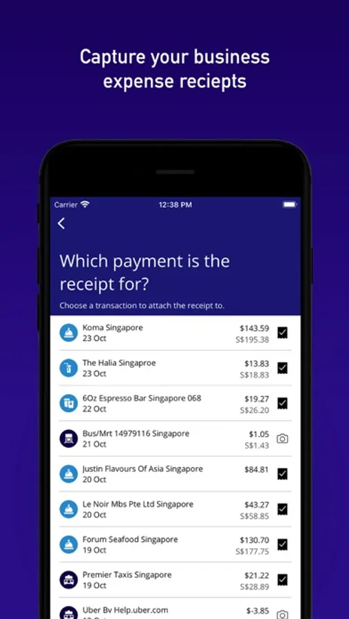 Notifications remind you to upload your receipts, which are then matched and attached to your transactions. No more paper.