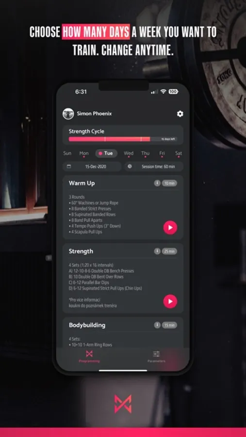 You can choose how many training sessions you want (3-6 training days per week). You can change it anytime.