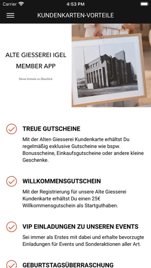 Mit der Alten Giesserei Igel App hast Du alle exklusiven Vorteile unserer Kundenkarte.