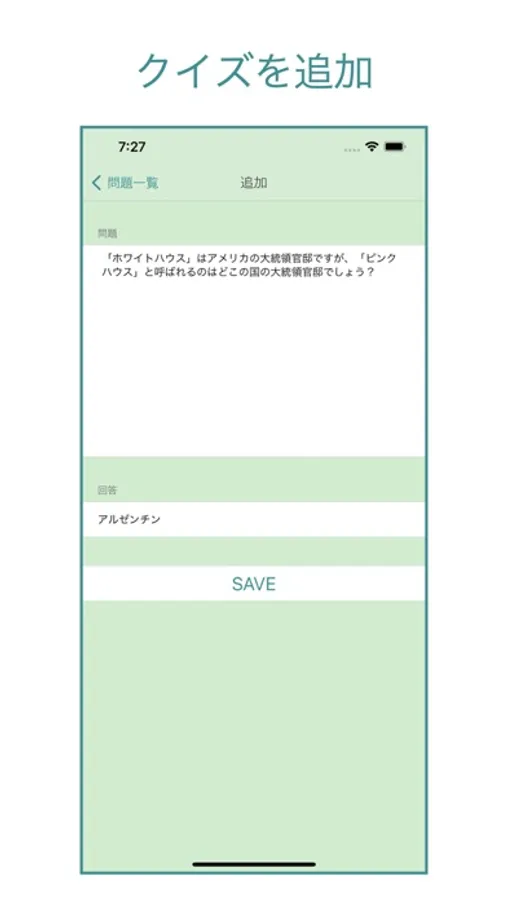 5.戻ると、一覧画面にクイズが追加されています。セルをタップして、編集をすることも可能です。