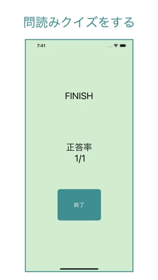 8.全ての問題を終えると、終了画面が出てくるので、「FINISH」ボタンを押します。