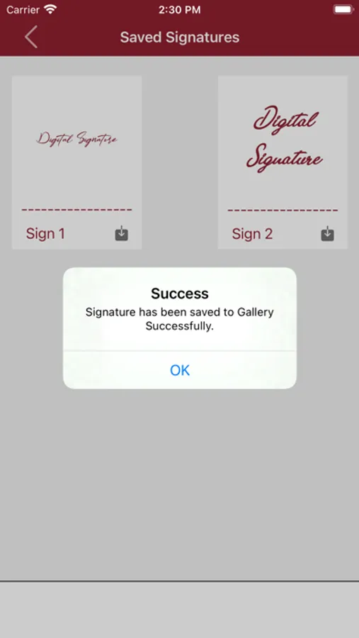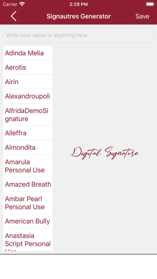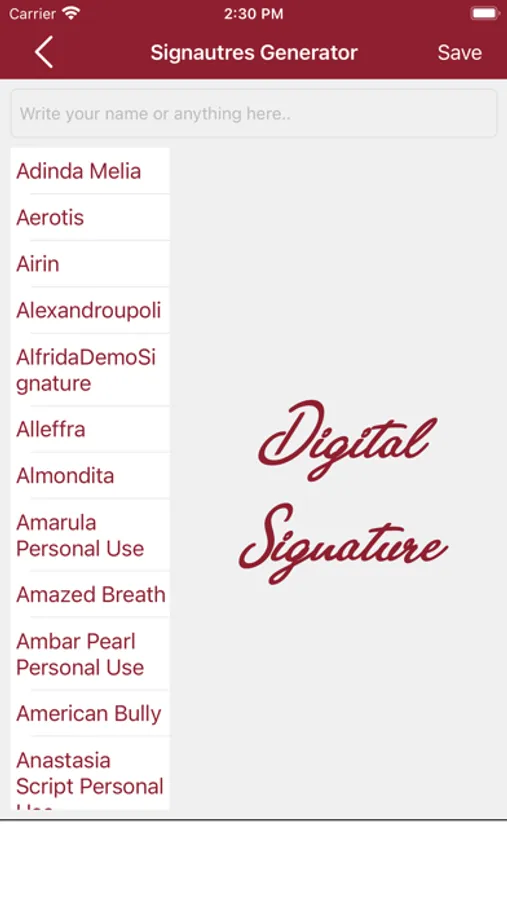 2. You can input your name to the app, and the app will automatically generate multiple signature, where you can choose one of your choice.