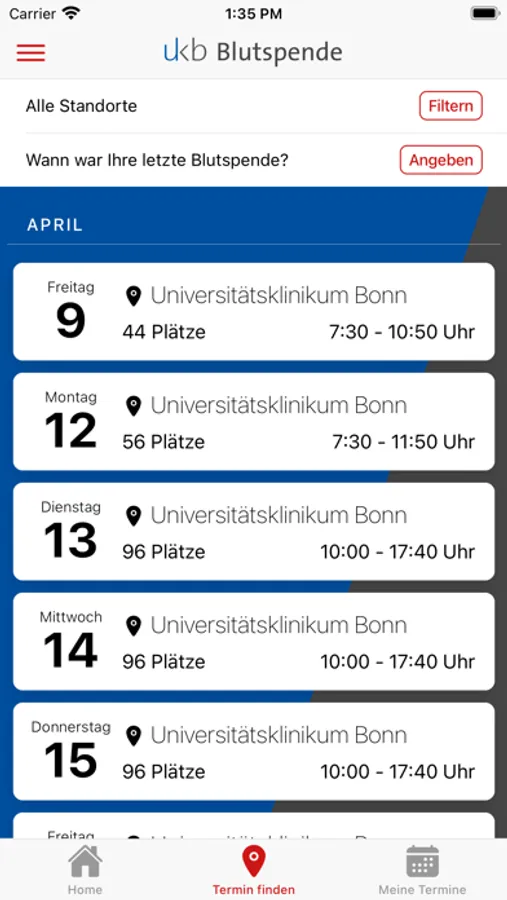 Terminvereinbarung: Die zentrale Funktion der UKB Blutspende App: Einfach registrieren, Termin buchen und fertig.