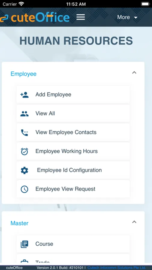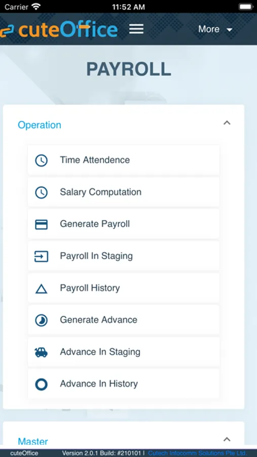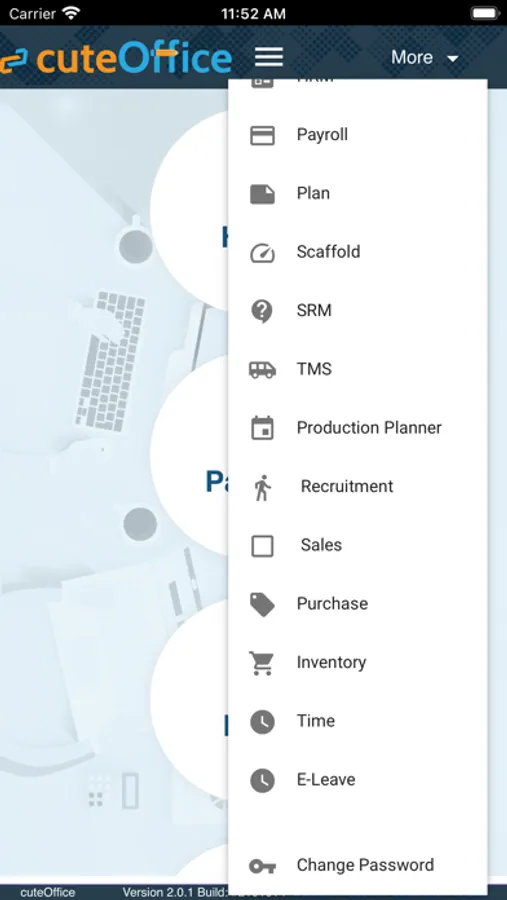 cuteOffice ERP that manages Human resource, time attendance, leave, payroll, procurement, inventory, sales, operations and finance functions of all companies.