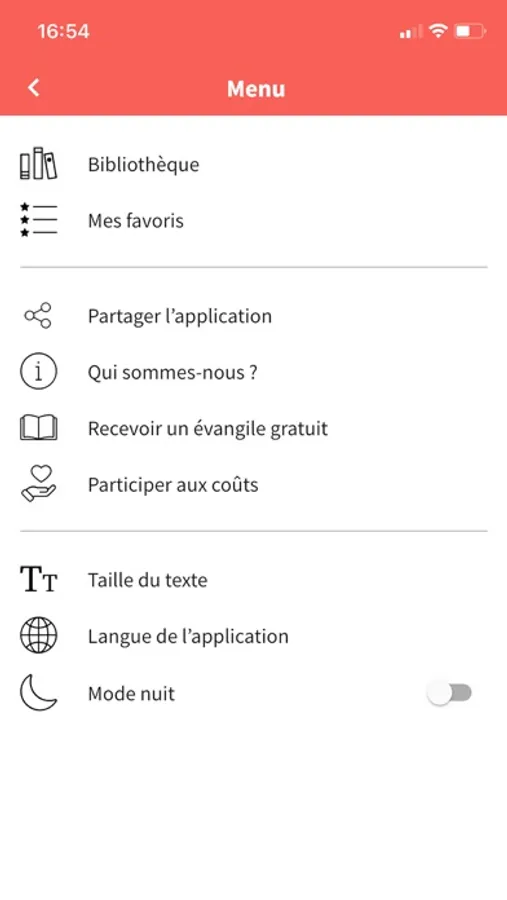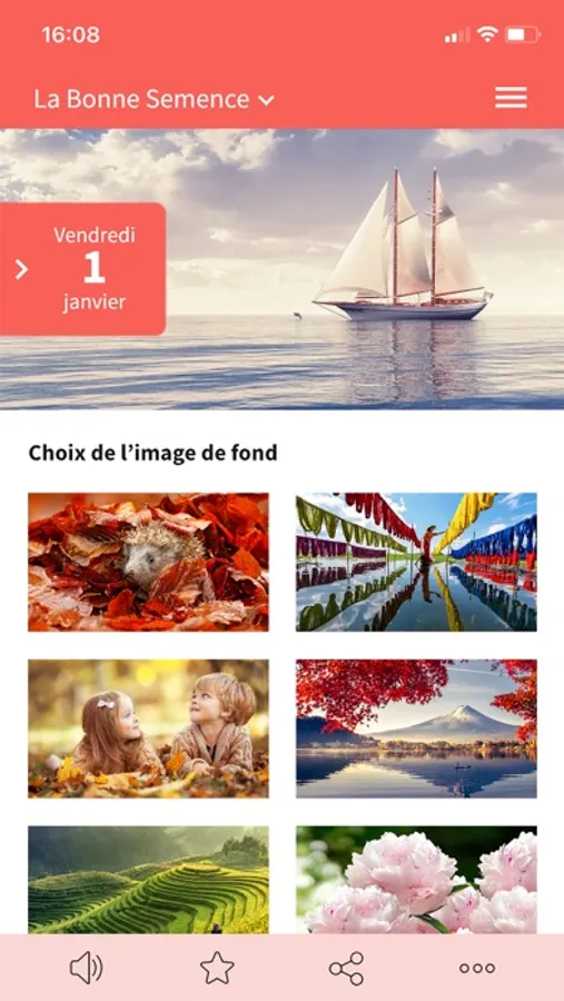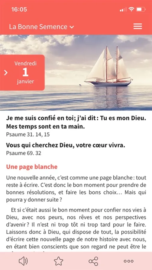 - écoute audio du message du jour (pour cette fonctionnalité, une connexion internet est nécessaire)