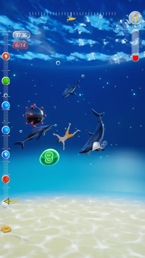 - It's time to get back on the boat. Use your memory to drop the colored oxygen balloons into their places and dodge the crazy sharks with your quick movements or lure them into a trap with mines and get back to your boat as fast as possible.