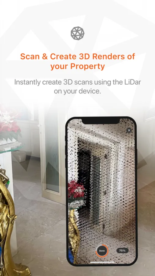 No sketches! No measurements! No expensive scans! No rotary devices or tripods! Just walk through your property (this feature requires a native LIDAR laser on your device) to scan it. All in just a few minutes. The scan will be processed on our servers, and a 3D render available within minutes. All your property spatial information has been captured, including its measurements. A scan can typically cover an area of 200 m² in one sweep.