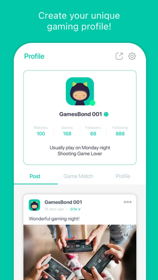 GamesBond is a brand new social networking app for everyone who loves playing games with friends. Exclusively designed for people to bond with each other through playing games, we aim to build a positive vibes gaming community that is suitable for everyone. We are the perfect place for you to share your gaming moments with your friends and followers as much as you want!
