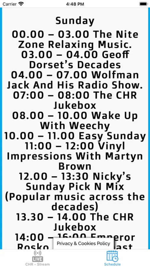 Conquest Hospital Radio broadcasts to the patients of the conquest hospital and Bexhill Irvin unit. We broadcast 24/7 also across the World Wide Web. Downloading the app means you can take CHR with you anywhere in the world. Listen to your favourite presenter and enjoy the great music we play.