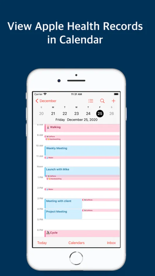 • You can view your health records in daily, weekly, and monthly views of your calendar.
