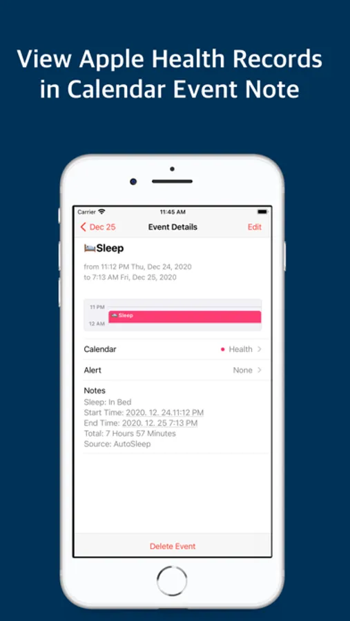 • Import Apple health records and automatically create calendar events based on the time of that data.