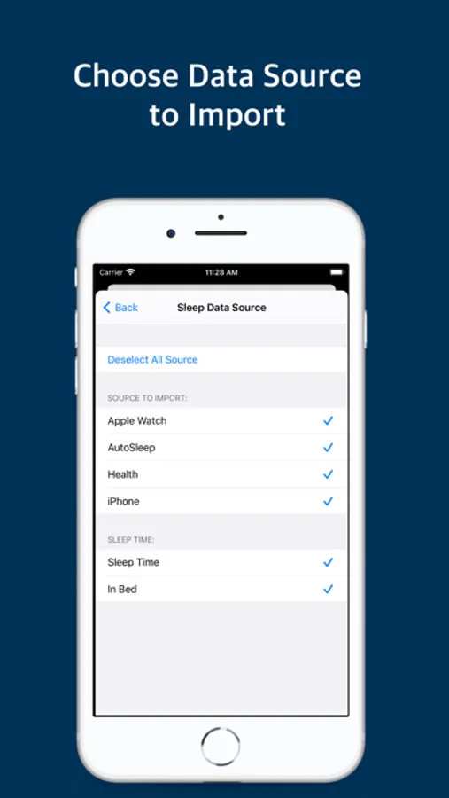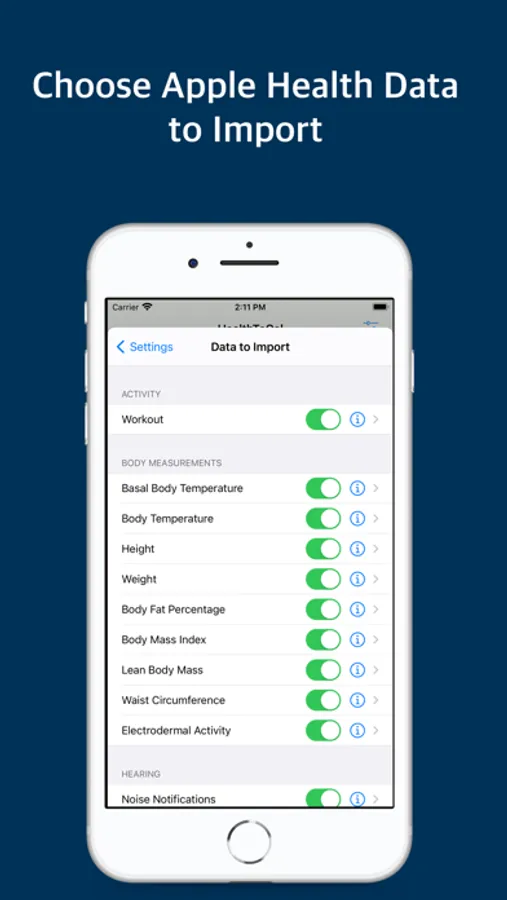 • Choose what data to import, such as exercise, sleep handwashing, water, caffeine, mindfulness, and noise alerts.