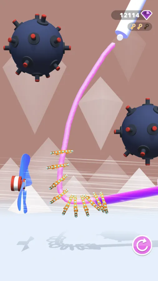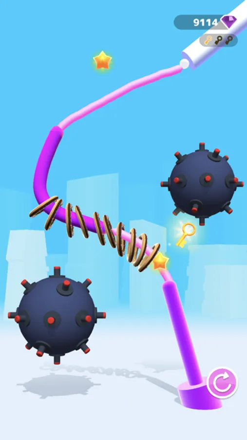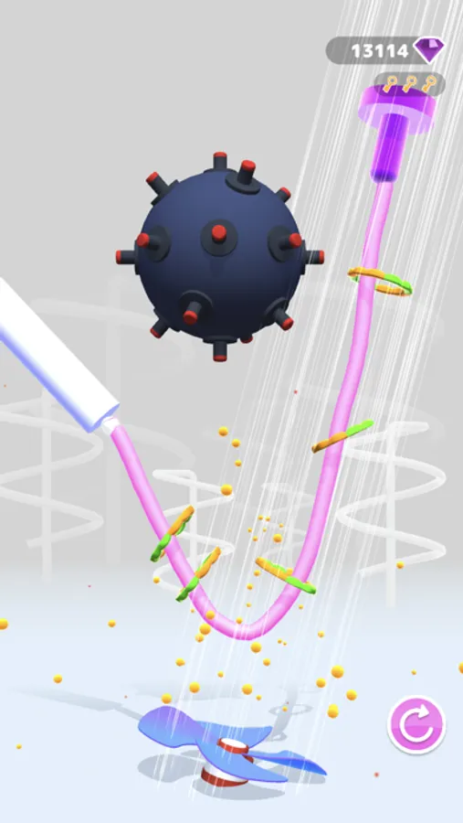Playing is easy! Just touch the screen and drag your finger to draw a path for the hoops. Try not to loose a single object. The game features a tricky puzzle where you have to think carefully to beat the level.