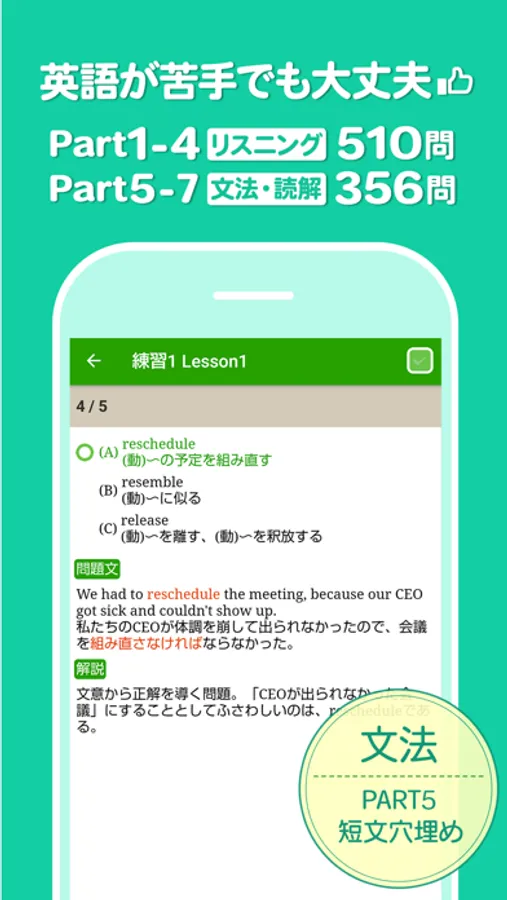 基本から練習できる究極のTOEIC®test対策アプリ。