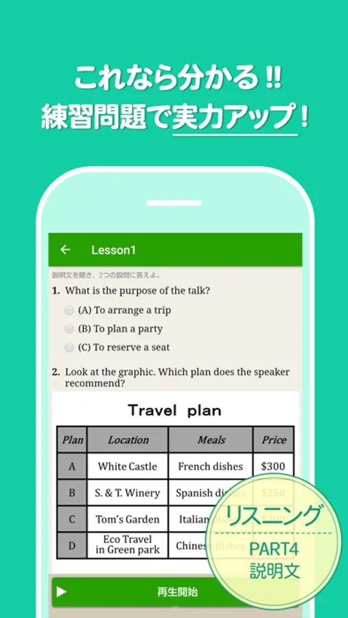 本アプリ「はじめてのTOEIC®問題集」のコンテンツは、弊社が独自に作成したものです。