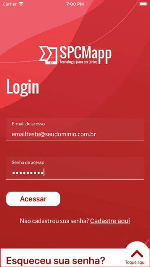 Obs.: Consulte se o cartório já possui o serviço SPCM App. Seus protocolos estarão vinculados ao e-mail informado na recepção do título, sem a necessidade de realizar cadastro na Serventia.