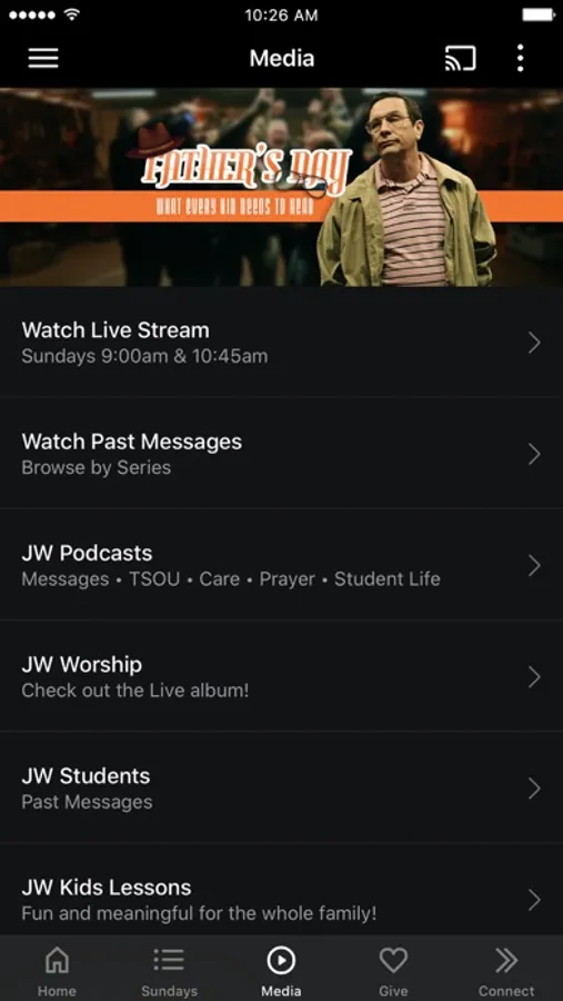 - Watch or listen to past messages, worship & podcasts