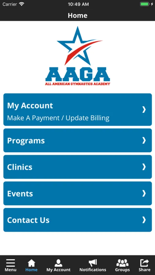 The AAGA app allows you to register for classes, parties and special events at our location in Sioux Falls, SD. The AAGA calendar, team stat tracker, social media links, and contact information are also easily accessible from the app.