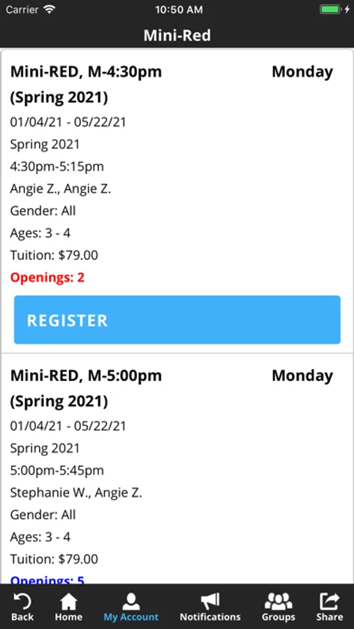 - Have a class in mind? Search by program, level, day, and time. You can register or even put yourself on a wait list.